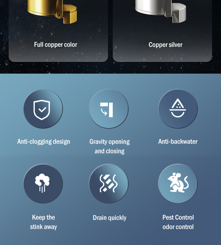 Deodorant full copper gravity floor drain