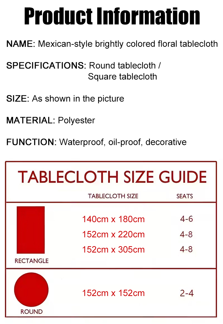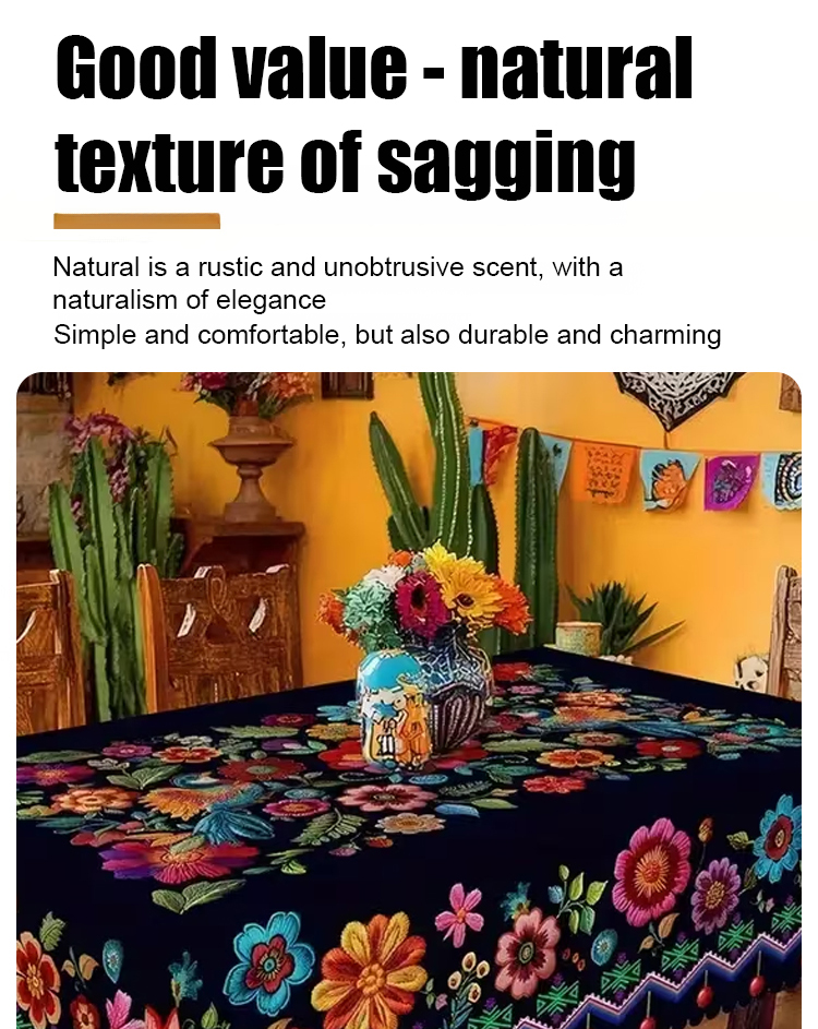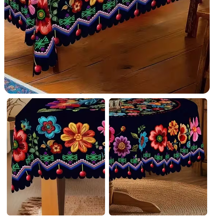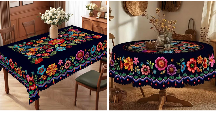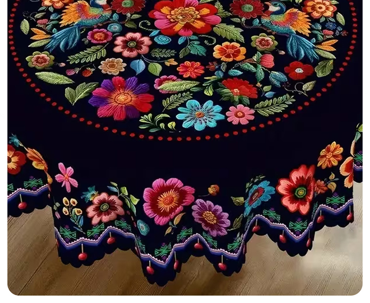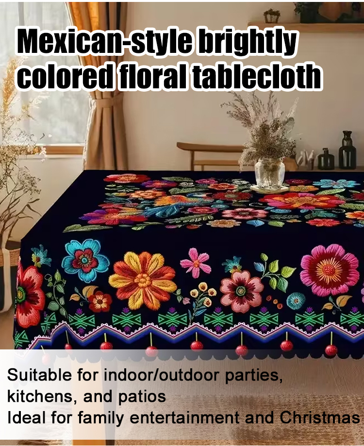 Mexican-style vibrant colorful floral tablecloth